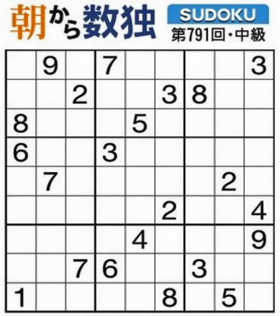 最後の紹介になりますが、紹介できなかった数独3題をお届けします。