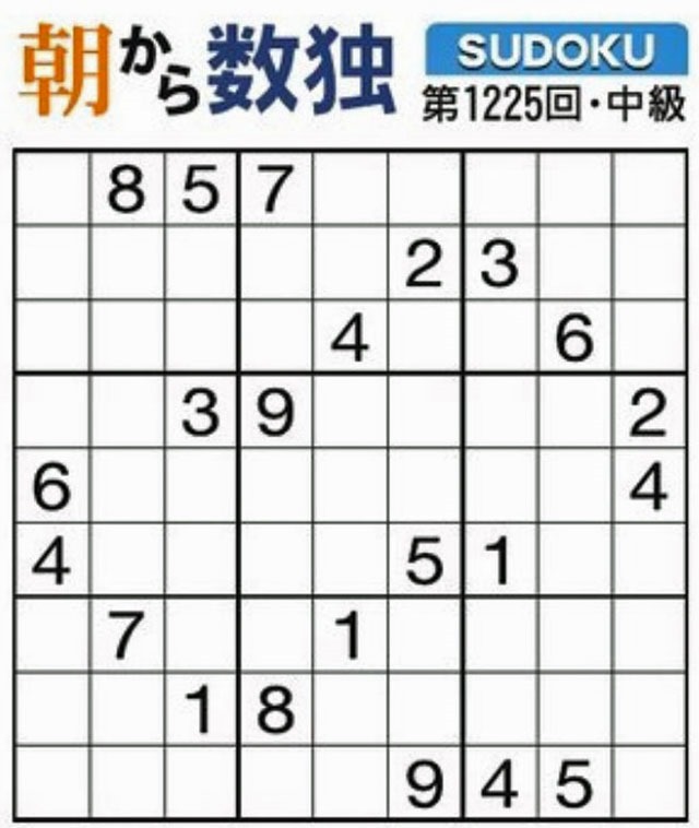 毎日新聞掲載の数独中級と2題の数独難題です。ところで、「頭が良い」とはアイヌ語では何というのでしょうかね~。