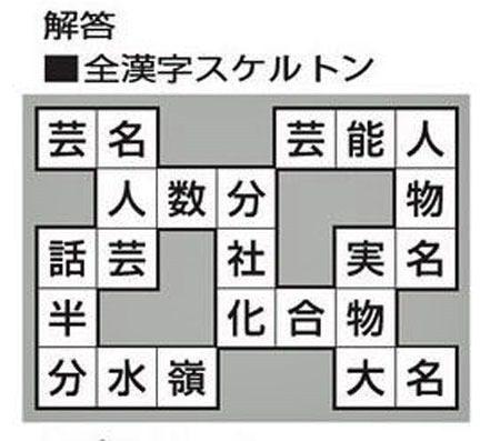 今日は土曜日、毎日新聞のパズル掲載の日です。お題は「全漢字スケルトン」です。