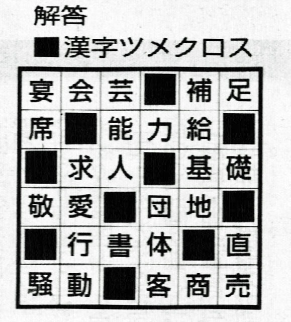 漢字ツメクロスが今朝のお題です。問題をよく読んで完成させてください。