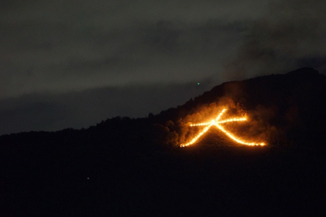 京都の夏の風物詩「五山送り火(ござんのおくりび)」。