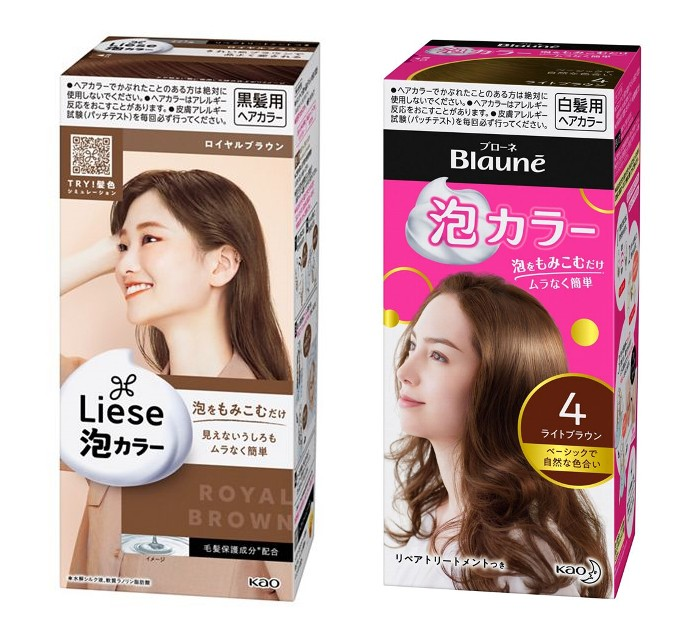 花王のヘアカラー商品として、ムラなく美しく仕上がる「リーゼ泡カラー」や「リーゼ 泡カラー 髪色もどし」、白髪染めの泡タイプ「ブローネ泡カラー」、クリームタイプ「ブローネ ルミエストヘアカラー」などがある。