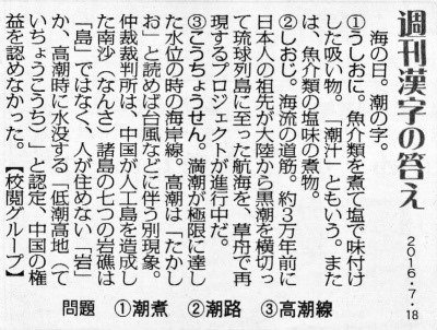 今日は2週間ぶりの「週刊漢字」掲載の日でもあります。