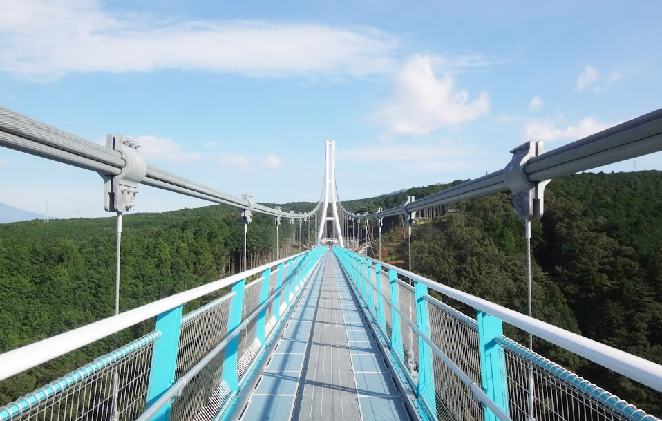 日本最高の富士山を、日本最長の大吊橋から望める贅沢な空間です。最初は揺れる橋に足がすくみそうになりますが、絶景に感動すること間違いなしです!