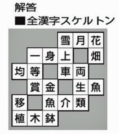 今日は土曜日、毎日新聞のパズルと、親方が探してきた数独難題といわれているものを紹介します。パズルは「全漢字スケルトン」ですから問題をよく読んで解いてください。易しいパズルだと思いますよ。 なお難しい数独には答えはありませんが、易しいパズルには答えを掲載しました。