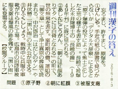 今日の「週刊漢字」は原爆に関連する漢字です。
