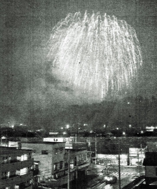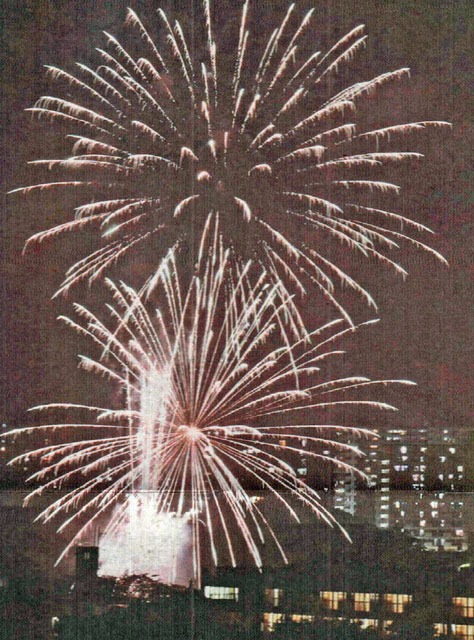 ご覧になっていない方は、上の花火の様子の写真を見て、実際に打ち上げ花火を見た気分に浸ってください。そして、新型コロナウイルスの感染終焉を願ってください。