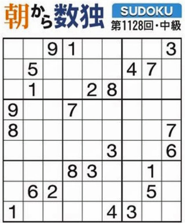 花火の写真を見たついでに、今朝の毎日新聞に掲載された数独中級と探してきた数独1題を紹介しますので頭の体操をしてください。
