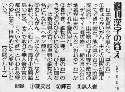 そして2016年5月に日本地質学会が「県の石」を選定しました。米国には「州の石」が定められていますが、我が国には今まで定められていませんでした。