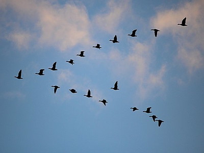 鴻雁来(こうがん、きたる):10月8日から10月12日頃まで。 春にやってきたつばめが南へ帰るころ、入れ違いになって雁が隊列を組んでやってきます。渡り鳥の行動が我々に季節の移り変わりを知らせてくれます。 |