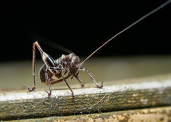 コオロギ:この季節、枯れ草が目立つ草むらや畑に摘まれた草などをよけるといっせいに飛び出してめいめいに走り出します。ほとんどは夜行性であり、よく通る声で鳴く声は、秋の夜長によく響きます。 |