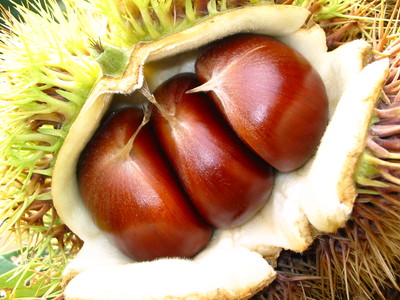 栗:栗は種子が肥大化したものでナッツの一種です。でんぷんが多いヘルシーな食材です。植物繊維も多く、ゆで・蒸し・焼きなどと、様々に楽しめます。 |