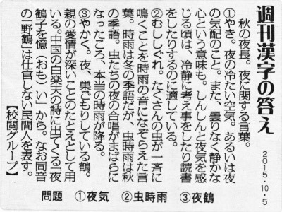 秋の夜長で夜に関する漢字がお題です。