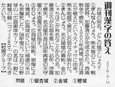 今日のお題はお城の別名でなんと読むか、どこにある城なのかということを考えるものなのです。