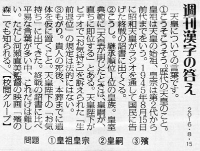 少し頭を使って下さい。今日のお題は”天皇に関する言葉”です。