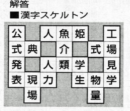 9月最初の土曜日、毎日新聞のパズル掲載日です。今日のパズルは、漢字スケルトンの問題です。問題をよく読んでチャレンジしてください。