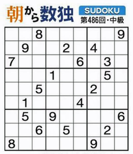 今日は毎日新聞朝刊に数独中級が掲載されていました。数独難問と一緒に紹介しますので、涼しく感じる時間を有効に使ってチャレンジしてください。毎度のことですが、答えはありませんよ!!